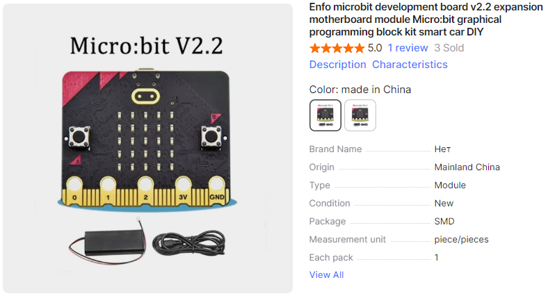 Micro:bit is the heart of the platform. You must purchase version 2.x or higher. This is important because there is not enough memory for bluetooth to work properly on earlier versions. For debugging it is more convenient to take a version with a block of replaceable batteries. This one suited us.