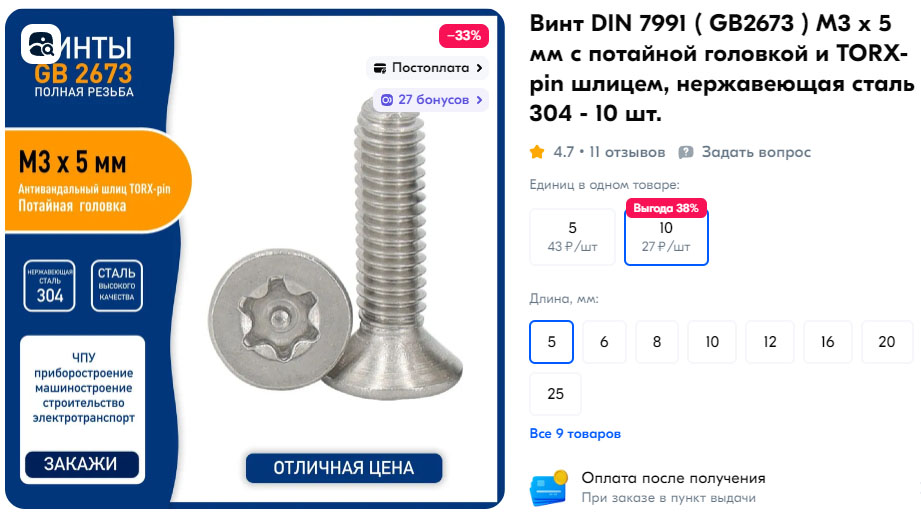 1.7. Screws DIN 79991 M3 x 5mm